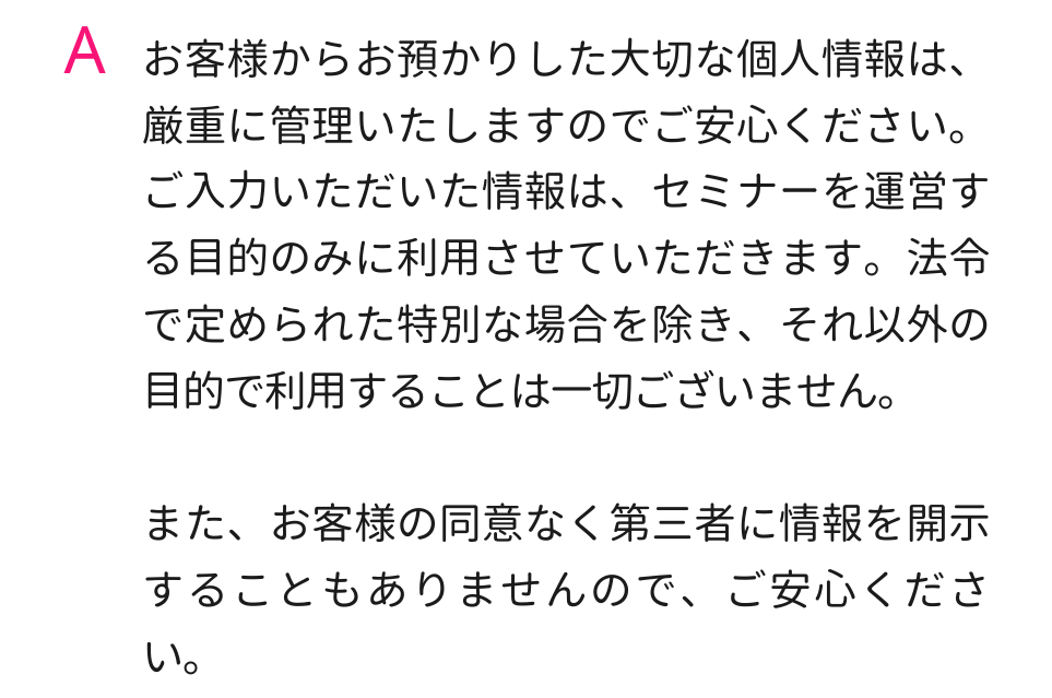 一人でも多くの方に、経済的な不安から解放された、豊かで幸せな人生を送ってほしい。そのために正しい金融知識をお伝えすることが、本セミナーの目的ですので、営業・勧誘・斡旋をすることはありません。